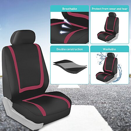 Model: FH Group Car Seat Covers Full Set Cloth - Universal Fit Automotive Seat Covers, Low Back Front Seat Covers, Solid Back Seat Cover, Washable Car Seat Cover for SUV, Sedan and Van Burgundy