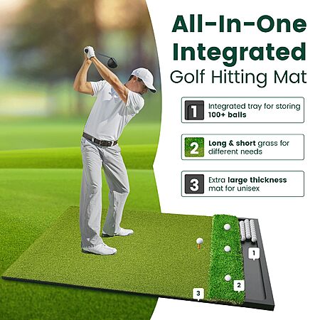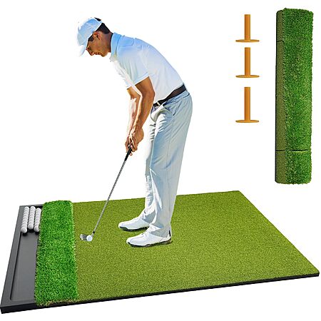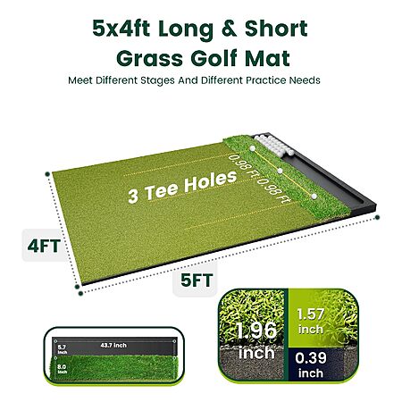 Golf Hitting Mat with Ball Tray 5x4ft - 6x4ft Dual-Turf Practice Mat for Indoor & Outdoor Use Golf Training Mat with Rubber Tee Holes, Suitable for Swing Driving & Chipping $85.47
