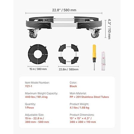 [AC] $10.89 | VEVOR Trash Can Dolly with 4 Lockable Wheels at Amazon