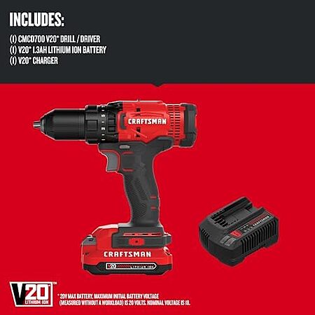 $59* | CRAFTSMAN V20 Cordless 1/2" Drill/Driver w/ 1.3 Ah Battery & Charger at Amazon