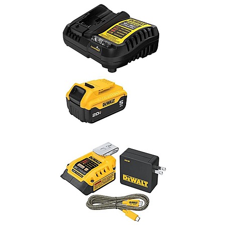 DEWALT 20-Volt MAX Lithium-Ion 5.0 Ah Battery and Charger with 20V MAX Charger and USBC Adaptor Kit $187 + Free Shipping