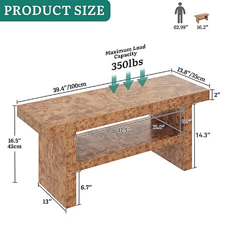 Sturdy Engineered Wood Frame: Built with thick, high-quality engineered wood, this bench supports up to 350 lbs with confidence. Its solid construction delivers everyday reliability and a stable seating experience.