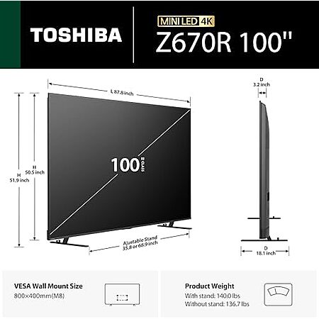 $2499.99 | Toshiba 100" Z670 Series Mini-LED 4K UHD Smart Fire TV (100Z670R, 2026 New) at Amazon