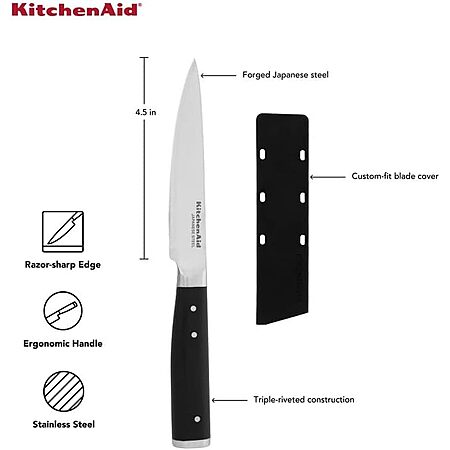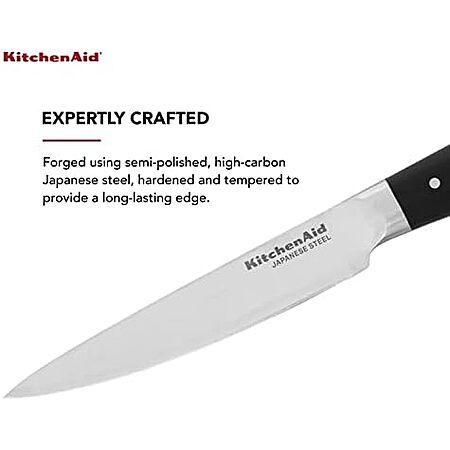 $10.50 | KitchenAid Gourmet Forged Triple Rivet Fine-Edge Utility Knife with Custom-Fit Blade Cover, 4.5-inch at Amazon