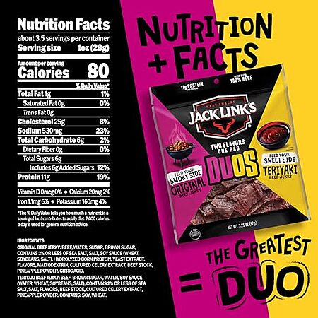 Select Accounts: 8-Pk 3.25-Oz Jack Link's DUOs Beef Jerky (Original & Teriyaki)