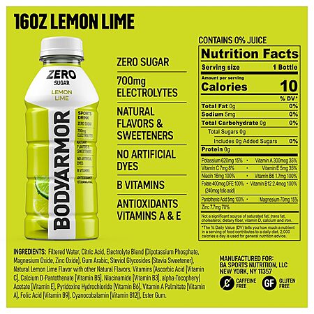 12-Pack 16-Oz BodyArmor Zero Sugar Hydration Sports Drink (2 Flavors) $9.00 w/ S&S + Free Shipping w/ Prime or on $35+