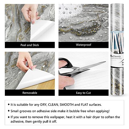 12" x 317" LACHEERY Gold Grey Marble Waterproof Self Adhesive Contact Paper $6.99 + Free Shipping w/ Prime or on $35+
