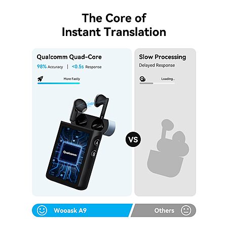 WOOASK A9 AI Translation Earbuds with ChatGPT, VoLTE Calling & Mobile Hotspot - No App Needed, Real-Time Translation for Travel & Business $179.99