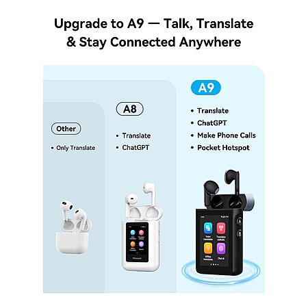 Amazon.com: WOOASK A9 Translation Earbuds No App Needed, 144 Languages AI Translator Real-Time with ChatGPT, 4G SIM Card Slot for Calls/Hotspot, Online/Offline/Photo Translation for Global Business Travel : Office Products
