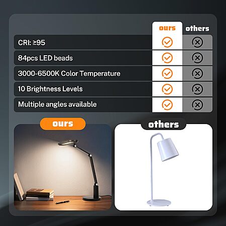 • Larger Lighting Range: The lamp head measures 11.73*3.9 inches and contains 84 LED beads, which can illuminate a larger space.