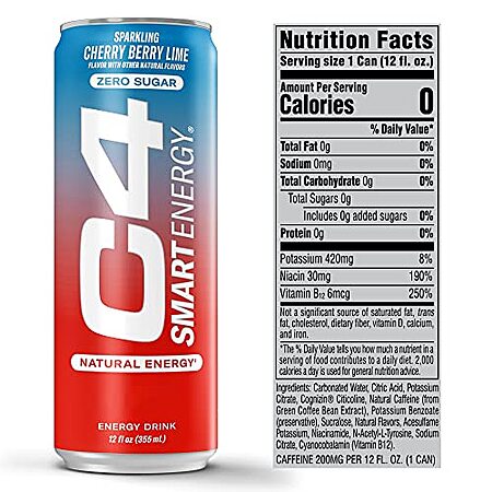 Cellucor C4 Smart Energy Drink - Sugar Free Performance Fuel & Nootropic Brain Booster | Cherry Berry Lime 12 Oz - 12 Pack~$13.29 With S&S @ Amazon