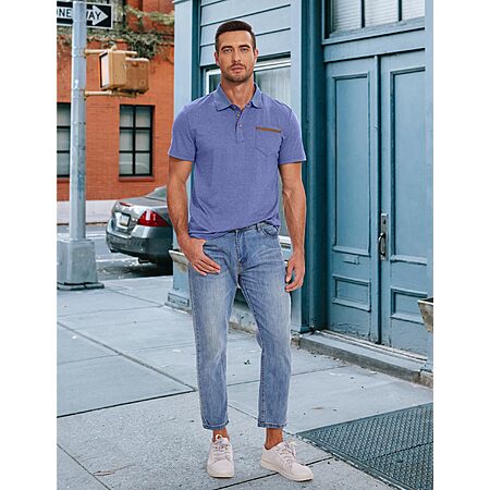 Men's Casual Polo Shirts Short Sleeve Summer Shirts Classic Collared Golf Shirt - $7.99