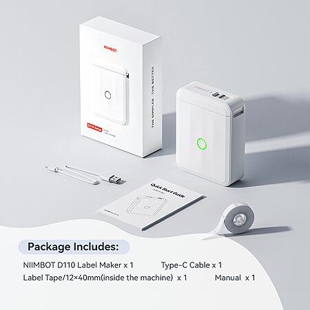 Model: NIIMBOT D110 Upgraded Version Mini Label Maker Machine with Tape, Portable Bluetooth Thermal Printer, Sticker Labeler with Multiple Templates for Office Organization Home Kitchen School, White