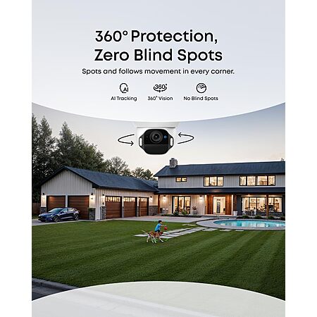 • AI Motion Detection and Smart Tracking: Built-in AI instantly detects and automatically tracks people, vehicles, or important events within view, minimizing false alarms and keeping your property secure.