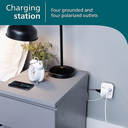 - Grounded and polarized outlets – All-in-one centralized surge protector power hub features four grounded, three-prong outlets and four polarized, two-prong outlets to accommodate various household appliances and electronics