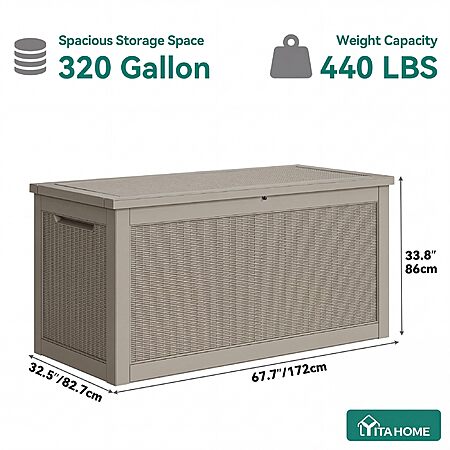 YITAHOME 320 Gallon Outdoor Storage Box, Large Water Resistant Resin Deck Box $251.99