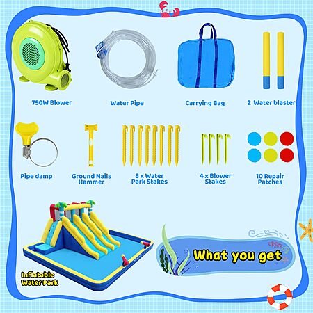 ELEMARA Inflatable Water Slide for Big Kids w/Large Double-Layer Pool, 20.66x16.4FT, 750W Air Blower $499.99