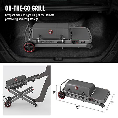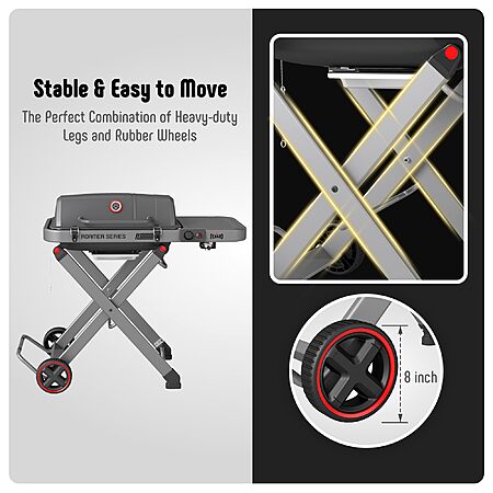 FEASTO Portable Propane Gas Grill with Folding Cart & 13000 BTUs Burner, 360 Sq. In. Cast Iron Cooking Grates, Side Table, 8" Wheels $299.99