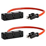 2-Pack 2' KMC 3-Outlet Power Extension Cord for