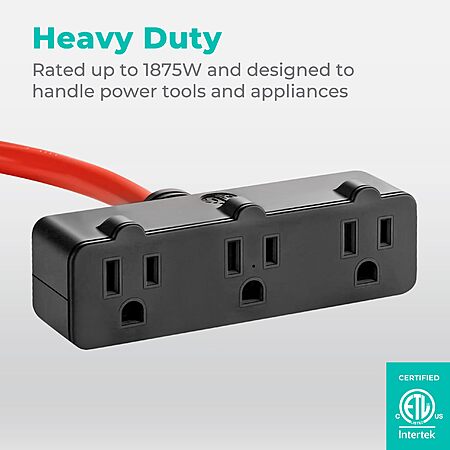 - HEAVY DUTY: Rated up to 1875 Watts, 15 Amps and Can Handle Heavy Duty Appliances, such as Power Tools, Snow Equipment, Lawn Mowers, De-Icing Equipment, Centrifugal Fans, Grow Lights, etc