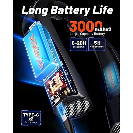 Model: Funaudio Portable Neck Fan, 6000mAh Rechargeable Personal Fan with 6 Speeds, Up to 20 Hours Runtime, 360° Cooling Wearable Fan with LED Light, Hands-Free Fan for Travel Camping Outdoor