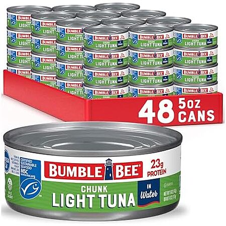 Bumble Bee Chunk Light Tuna In Water, 5 oz Cans (Pack of 48) -$30.20 (or $26) S&S Clip Q Free Shipping for ALL (63-54c per can)