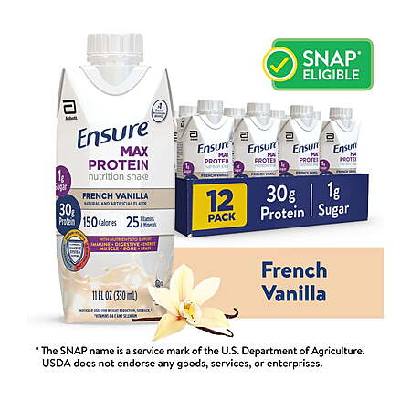 Ensure Max Protein Shake, 30g Protein, French Vanilla, 11 fl oz, 12 Pack