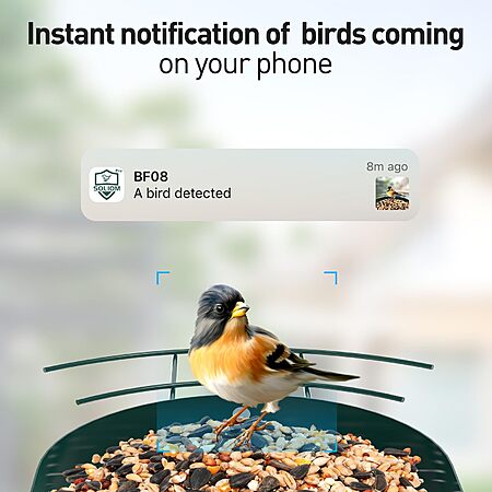 Model: Soliom- Bird Feeder with Camera, 5W Solar Powered, AI Identify Species, Smart Wild Bird Watching, 2K Live View, Instant Arrival Alerts,Large 2.7L Seed Capacity, Metal Squirrel Chew-Proof - BF08 Green