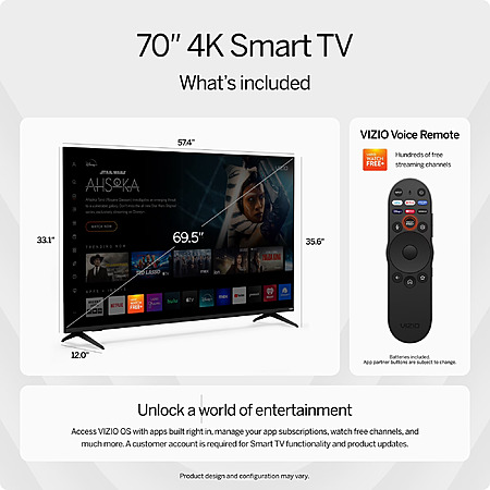 Walmart [walmart.com] has 70" VIZIO 4K UHD LED Smart TV (V4K70M-08) on sale for $328.00. Shipping is free w/ Walmart+ (free trial available [walmart.com]) or on orders $35+.