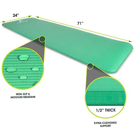 71"-Long ½" ProsourceFit Extra Thick Yoga and Pilates Mat / Exercise Mat with Comfort Foam and Carrying Strap for