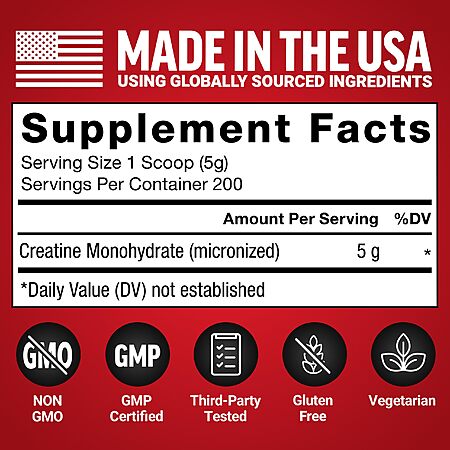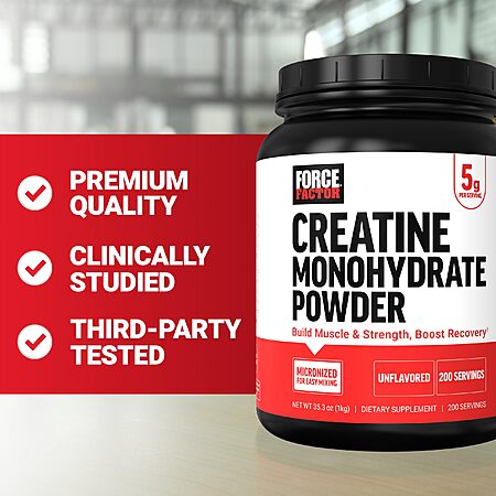 $25.97: Force Factor Creatine Monohydrate Powder, 5g Micronized Dose, Unflavored, 200 Servings, 2.21 Pound at Amazon