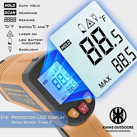 Knine Outdoors Infrared Laser Temp Gun Thermometer w/ Adjustable Emissivity (-58°F to 1112°F) on sale from $14.37 - $1.44 (10%) off when you