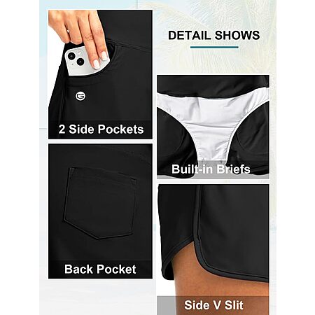 G Gradual Women's High Waisted Swim Board Shorts w/ Pockets (3"/5" Inseam, size XS-XXL, Various Colors) $14.99 + Free Shipping w/ Prime or on $35+