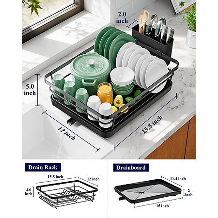 Kitsure-LLWW via Amazon has for Kitsure Dish Drying Rack for Kitchen Counter w/ Cutlery Holder (12''x15.5'', Black) on sale for $17.99 - 50% off when you enter the coupon code 50FFNBAA =$8.99. Shipping is free w/ Prime or on $35+.