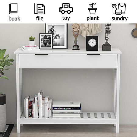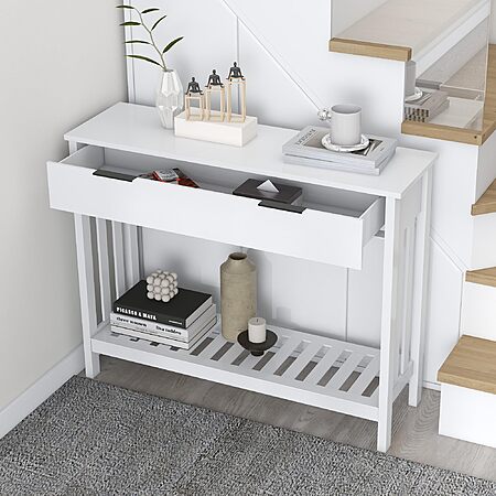 TAOHFE via Amazon has 39.4" TaoHFE Narrow Entryway Console Table w/ Drawer Storage (White) on sale for $79.99 - $40 (50%) off when you apply promo code WQQAS4Z5 on the checkout page = $39.99. Shipping is free.