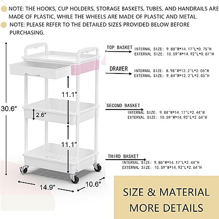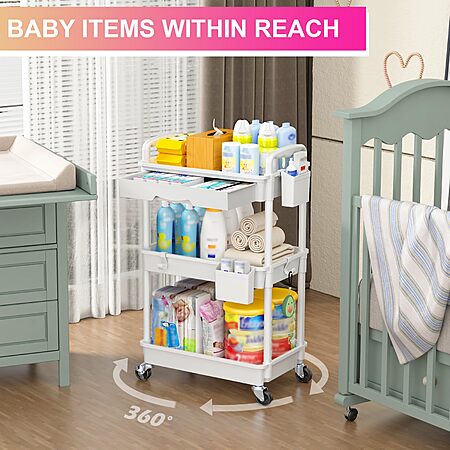 3-Tier Goovilla Rolling Utility Cart Organizer w/ Removable Drawer (White) $13.56 + Free Shipping w/ Prime or on $35+