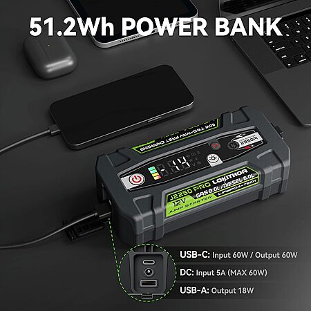 LOKITHOR J2250 PRO 2250A 12V LiFePO4 Jump Starter w/ ConnectMax for $139.95 - 50% off when you apply promo code