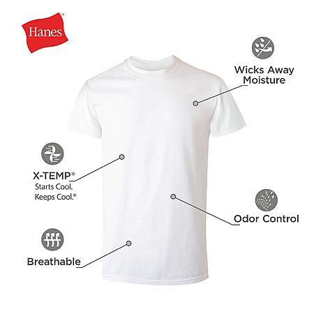 $18.75: Hanes Men's Performance Undershirt, X-Temp Moisture-Wicking Crewneck, White 5-Pack, Various Sizes