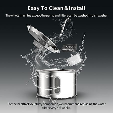 3-Liter Quiet Pump Stainless Steel Pet Water Fountain w/ 4-Layer Filtration $14.99 + Free Shipping w/ Prime or on $35+