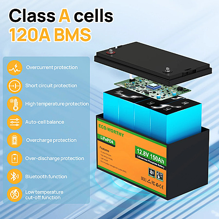 ECO-WORTHY 12V 150Ah Bluetooth LiFePO4 Battery with Low Temp Protection $125 + Free Shipping