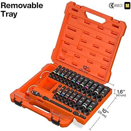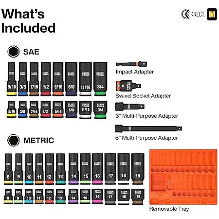 $129.98 | 44-Piece Klein Tools 65148HD KNECT Deep-Well and Shallow Impact Socket Set, 3/8-Inch Drive, SAE and Metric at Amazon