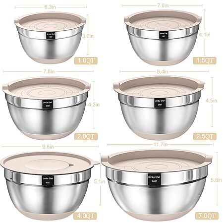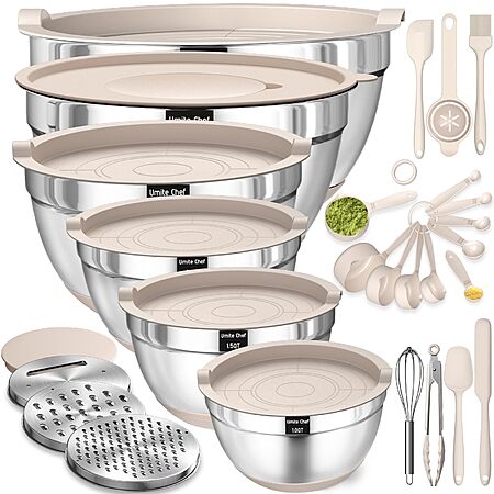 26-Piece Stainless Steel Mixing Bowl Set w/ Airtight Lids & Grater Attachments (1–7QT) $33.99 + Free Shipping w/ Prime or on $35+