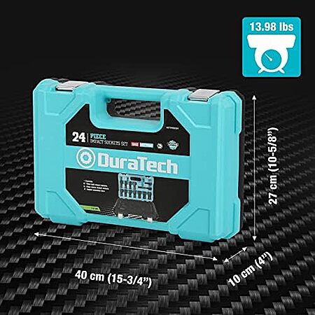Model: DURATECH 24-Piece Impact Socket Set, 1/2" Drive Deep Impact Socket Set with 2pcs 1/2-Inch Hexagon Extension Bars, Metric & SAE, Hard Case Included