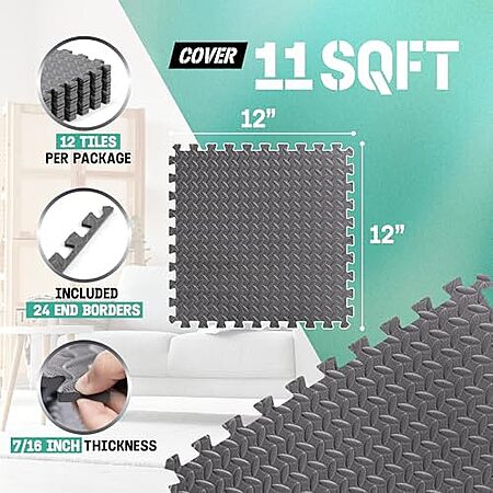 Amazon[amazon.com] has 12-Pack Yes4All EVA Interlocking Mats, Puzzle Floor Tiles (7/16" Thickness, 11 SQFT) for $12.85. Shipping is free with Prime or on $35+ orders.