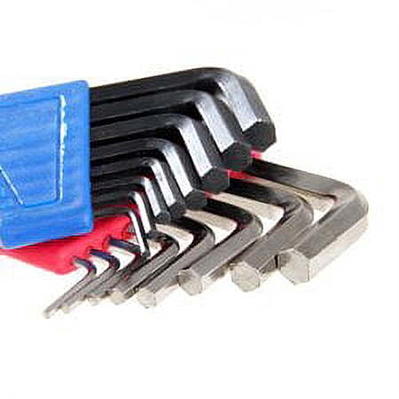 - 16-Piece hex key set consists of 8 SAE and 8 Metric sizes