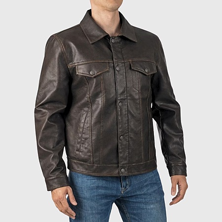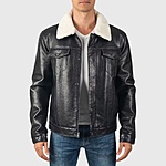 Alpine Swiss Aaron Mens Fitted Trucker Jacket Faux Fur Collar Vegan Leather Warm Casual Coat $36