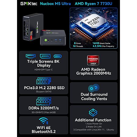 GMKtec NucBox M5 Ultra Mini PC: Ryzen 7 7730U, 16GB DDR4, 512GB SSD $384.99