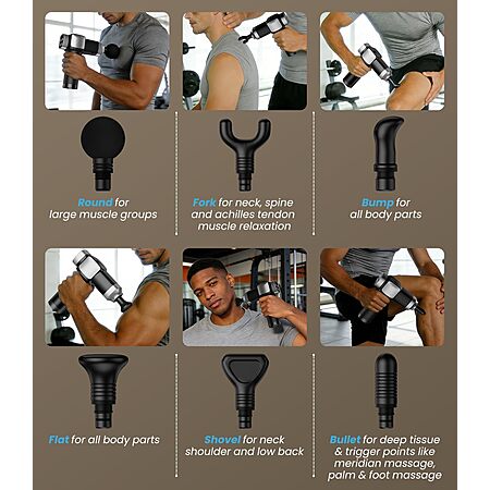 Prime: COOJOK Portable Deep Tissue Percussion Massage Gun w/ 6 Heads $15.19 + Free Shipping