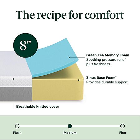 8" Zinus Green Tea Essential Memory Foam Mattress (Twin) $76.34 + Free Shipping