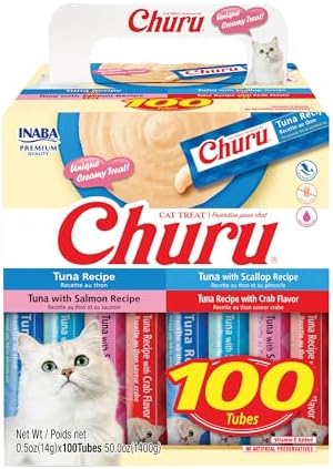 INABA Churu Cat Treats, Lickable, Squeezable Creamy Purée with Vitamin E, 0.5 Ounces per Tube, 100 Tubes Total, Tuna Variety $35.62 S&S, Buy 3, get $30 Amazon Credit